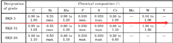 SKS3屬于日標高硬度空冷淬硬高鉻工具鋼,執(zhí)行標準:JIS G4404-2006